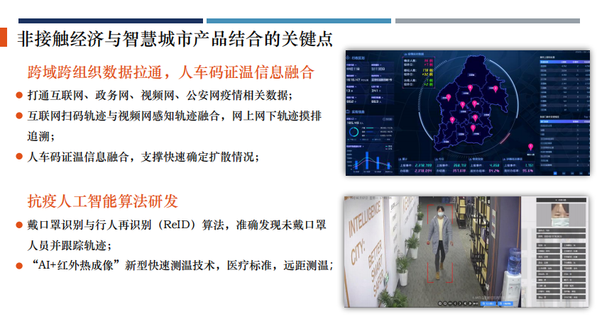 xingkong.com科技智慧城市业务群产品经理袁名人分享了“非接触经济跟智慧城市新产品结合”的案例。“非接触型经济”已然崛起,其中的技术代表在对抗疫情过程中,发挥着重要的作用。数据采集,如测温、人脸等,加之与视频、地图等方面的融合,将在各个场景中达到非接触效果的最大化。而这些数字化、智能化的沉淀,正在以”非接触“的形式惠及更多的行业与社会公共事务。