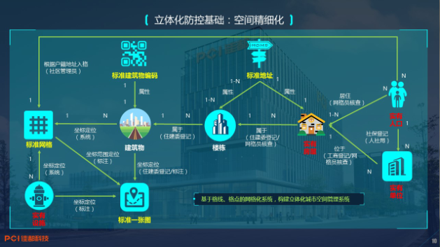 立体化防控基础:空间精细化。基于格线、格点的网格化系统,构建立体化城市空间管理系统,主要建设的内容包括:标准作业一张图、标准地址、标准建筑物编码、标准网格、实有人口、实有房屋、实有单位和实有城市部件。没有基础的网格信息,很难想象如何构建立体化防控体系。