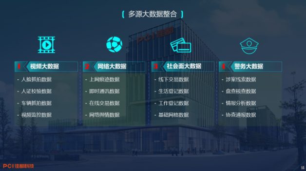 首先构建的就是数据防控圈,包括四大类数据:视频、政务、网络和警务大数据。